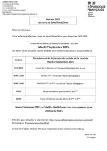 Accueil / Actualités/ 5° – 4° – 3° – Rentrée 2025 – 2026