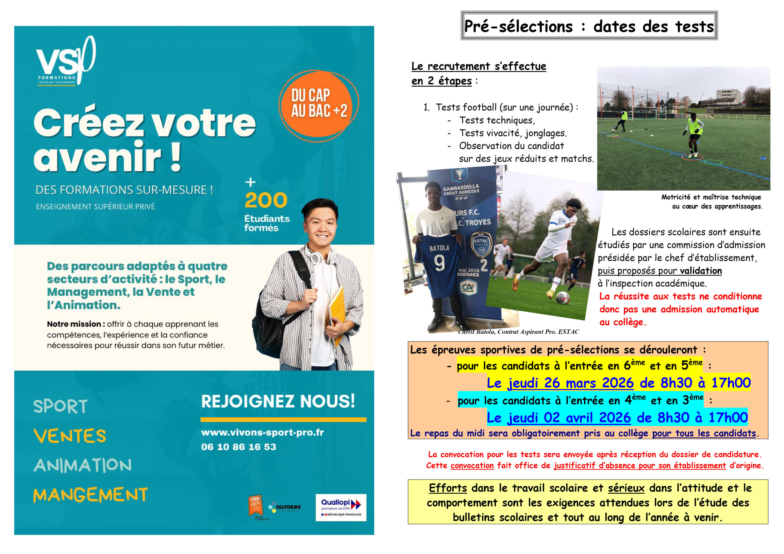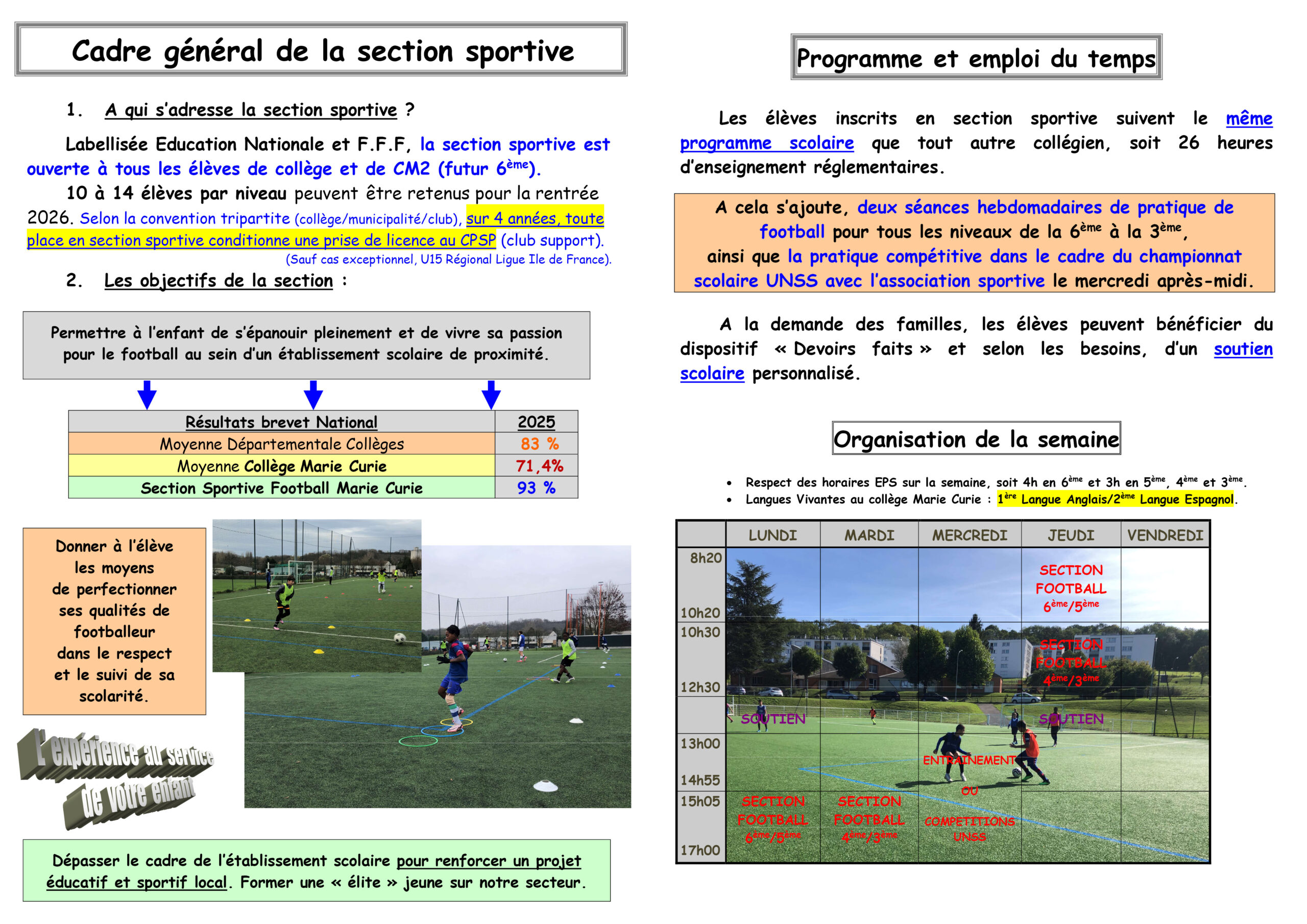 La section foot du Collège, ouvre les inscriptions pour la Rentrée 2026